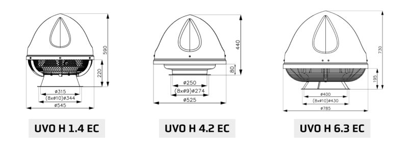 Na voljo je v treh modelih (1.4 EC, 4.2 EC, 6.3 EC), ki zagotavljajo pretok zraka do 6300 m³/h. Ventilator ima horizontalni izpuh, visoko učinkovite EC motorje ter robustno ABS ohišje, kar omogoča dolgo življenjsko dobo, tiho delovanje in nizko porabo energije.