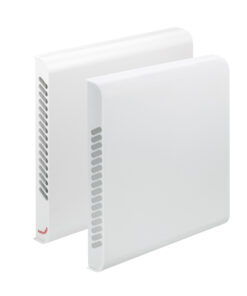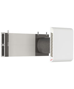 ComfoSpot 50 lokalna prezračevalna naprava 50 m3/h pretoka zraka, križni-protitočni entalpijski izmenjevalec z vračanjem vlage, montaža na notranjo stran zunanje stene, vgrajena krmilna enota, brez zidne montažne cevi. Montažna cev je potrebna za namestitev v steno.